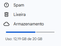 Se vocês acessarem o Drive, verão que no canto inferior esquerdo há uma indicação de armazenamento. Atentem-se pois o limite é de 20GB. É relativamente bastante. Eu sugiro que vocês não vinculem o Google Fotos, por exemplo, ao @usp.br de vocês porque pode ser que ocupe mais espaço do que o desejado. Eu já passei pela graduação e agora na pós-graduação tenho bastante espaço disponível: